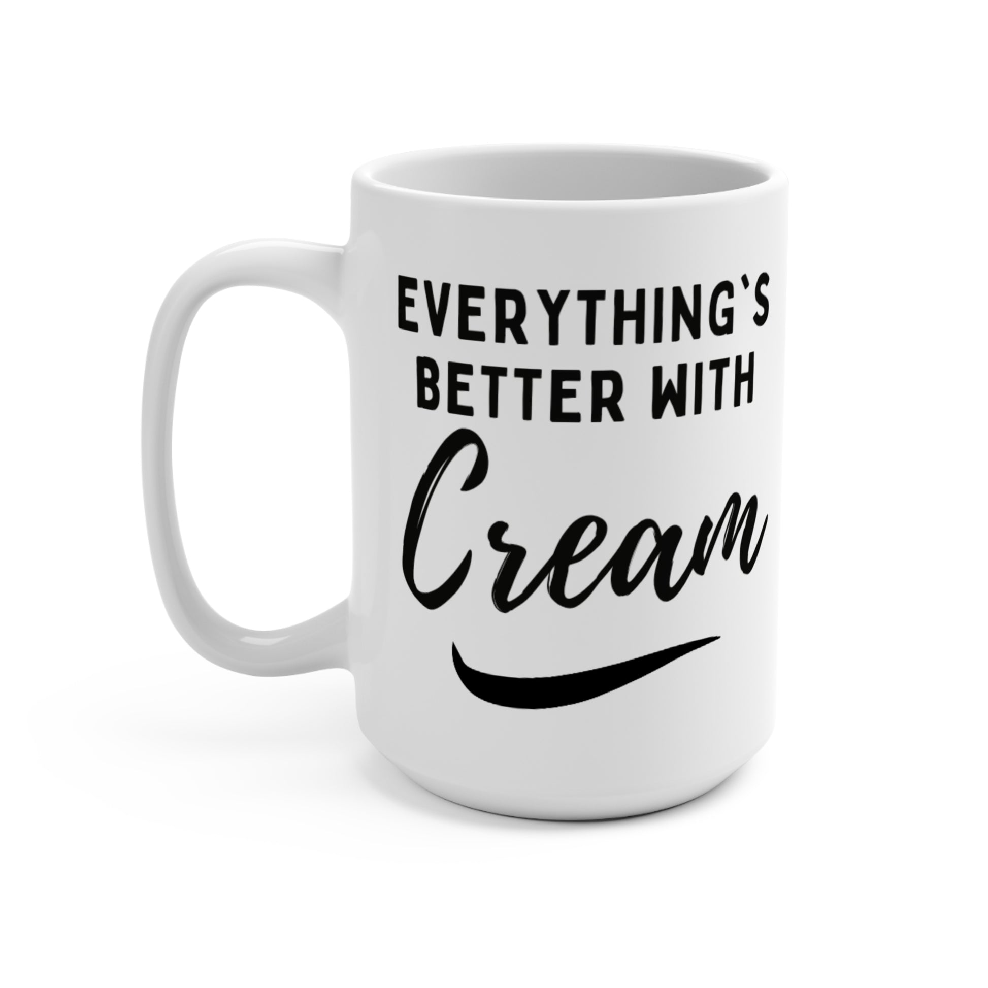 Start your morning with a smile with this 15oz ceramic mug featuring the bold phrase 'Everything is Better with Cream'. Perfect for dairy lovers, coffee enthusiasts, or anyone who appreciates life's little indulgences. Microwave and dishwasher safe, this playful mug is ideal for home, office, or gifting to a fellow coffee-cream devotee.